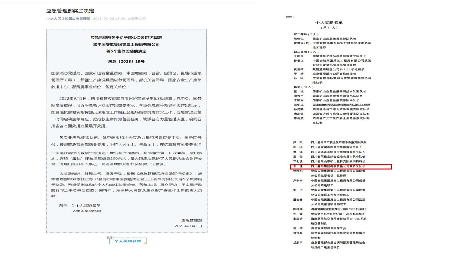 近日,应急管理部[2023]19号文件下发,对泸定抗震救灾表现突出的个人和集体进行奖励,华体会手机网页版,华体会(中国)矿山救护队队长王谦榜上有名。