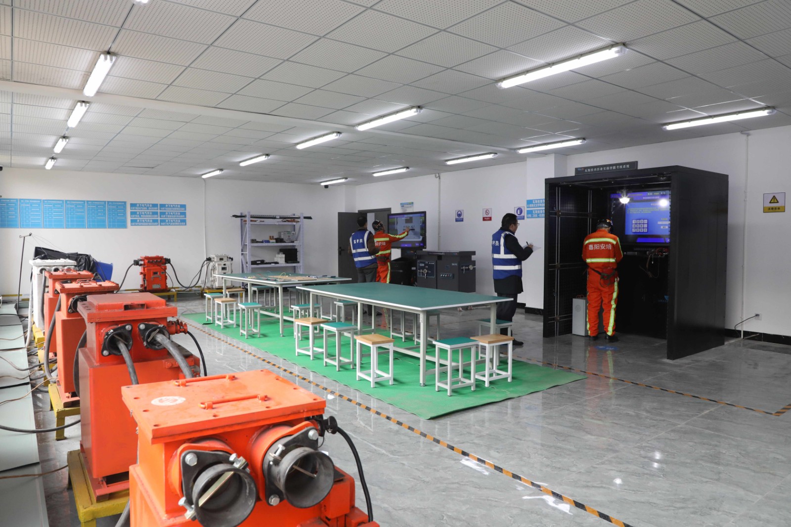 集团公司煤矿特种作业实操考点于2023年3月正式启动,累计投资2000余万元,配备国内最先进的实操仿真考试系统和设备,采用实操+模拟双向发力保证培训考试效果。可开展《安全检查工》《采煤、掘进机司机》《井下电钳工》《井下爆破工》《瓦斯检查工》《提升机操作工》《瓦斯抽采工》《矿井探放水工》和《监测监控工》等9个煤矿特种作业实操考试,考点现有12名持证教师(其中国家注册安全工程师5人、高级工程师5人、工程师5人),全部取得了实操考试教师证书,专业理论水平高,且均系嘉阳煤矿从事采、掘、机、运、通等专业技术及安全生产管理多年的技术工作骨干,实践经验丰富。