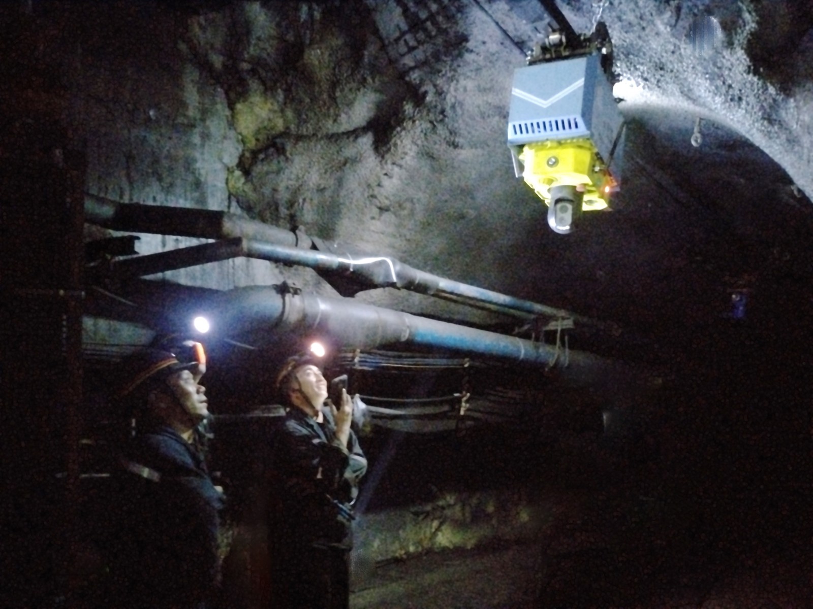 前期,嘉阳煤矿综合队和洗选厂在厂方指导下启动工程建设,先后在暗斜井和主斜井两巷道顶板进行了打锚杆与行走轨道安装操作,累计安装吊轨2400多米。同时,借助x射线探伤系统对输送皮带进行了3次探伤检查,确认完好可靠。目前,技术人员正在合力调试巡检机器人,确保行走灵活、巡检到位、判断准确。