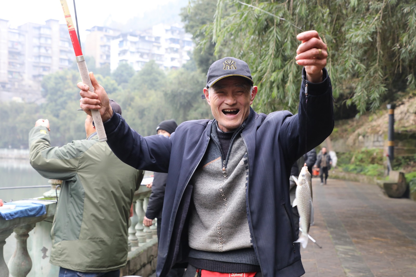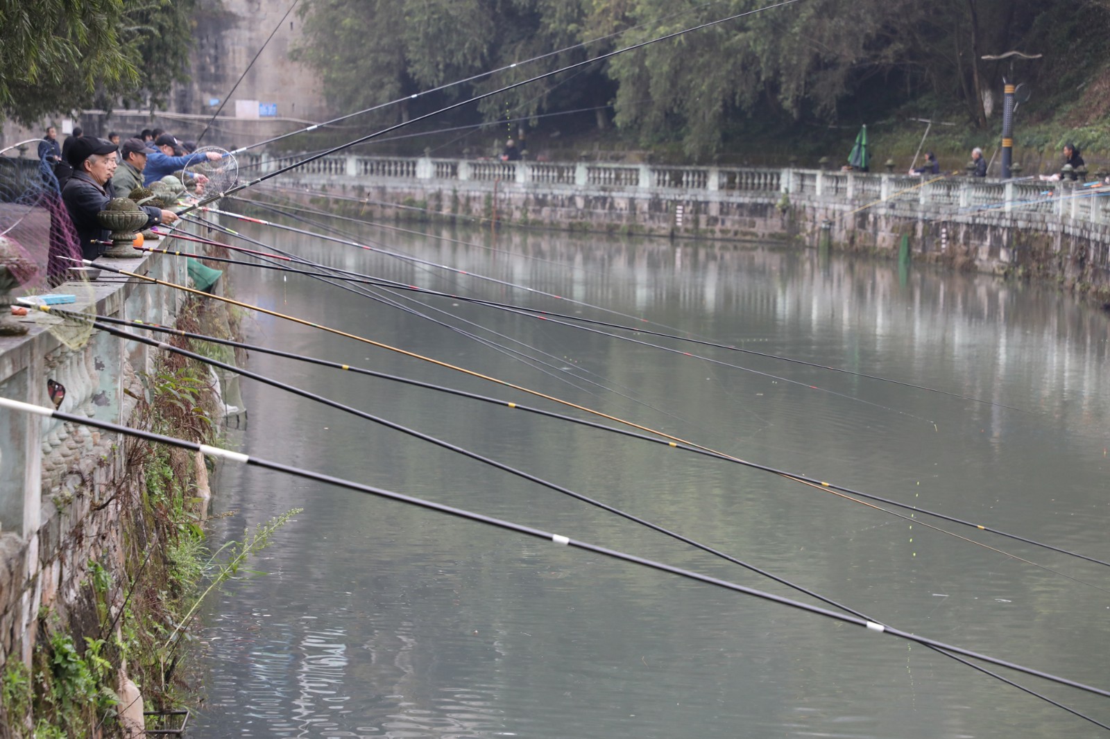 清晨,观音溪畔微风轻拂、杨柳依依,钓鱼活动在此举行,河道两岸早已围满了垂钓爱好者。水面波光粼粼,鱼儿在水中欢快嬉戏,时不时跃出水面。钓鱼者们全神贯注,眼睛紧紧盯着浮漂。活蹦乱跳的鱼儿不时被拉出水面,岸上响起阵阵欢呼,喜悦之情溢于言表。