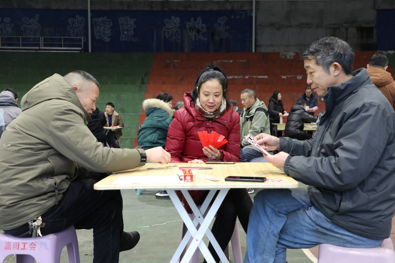 上午8时30分,“贰柒拾”字牌比赛拉开战幕。来自各单位的81名字牌爱好者现场抽签组队。比赛中,大家时而眉头紧锁,时而面露微笑,比赛既讲运气、又考实力,参与者沉浸其中,享受着竞技的乐趣。