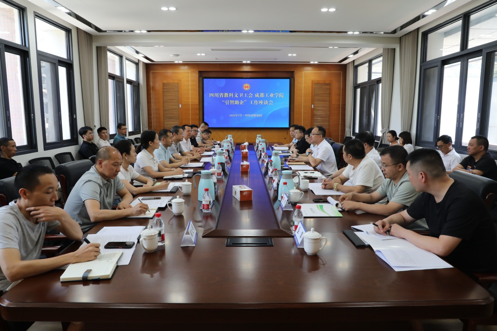 省教科文卫工会、成都工业学院四川省矿山智能化研究院、乐山市总工会等负责人及专家参与此次调研,犍为县总工会、犍为县应急局相关负责人出席了交流座谈会。