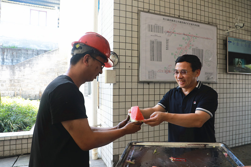 盛夏炎炎,骄阳似火。怀林副总又顶着烈日奔赴川投峨旅和嘉阳煤矿生产一线,看望慰问坚守在高温岗位上的职工同志们,为火车司机、讲解员和煤矿一线职工送上甘甜的西瓜和清凉的矿泉水。所到之处,怀林副总为职工们送上西瓜,并亲切叮嘱他们“天气炎热工作时更要注意自身安全!”他要求嘉阳和峨旅要切实将防暑降温工作落到实处,全方位保障高温岗位职工的身体健康和安全。