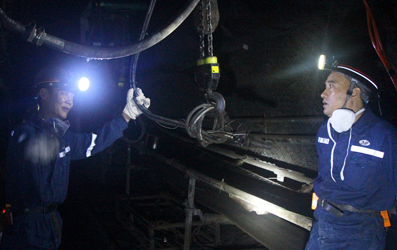 气动单轨吊在井下安装使用是公司今年的一项重点工程。虽然气动单轨吊在国内大型煤矿井下巷道中使用是一项较为成熟的技术,但在极薄煤层巷道中使用尚属首次,为此公司对气动单轨吊在极薄煤层巷道中运用进行了积极的探索研究。9月23日,公司党委书记、董事长杜勤来到1205机道检查,实地了解气动单轨吊在1205机道的试运行情况。据使用单位相关人员反映:气动单轨吊使用方便、用人少、效率高、职工操作安全系数高,试运行情况良好。