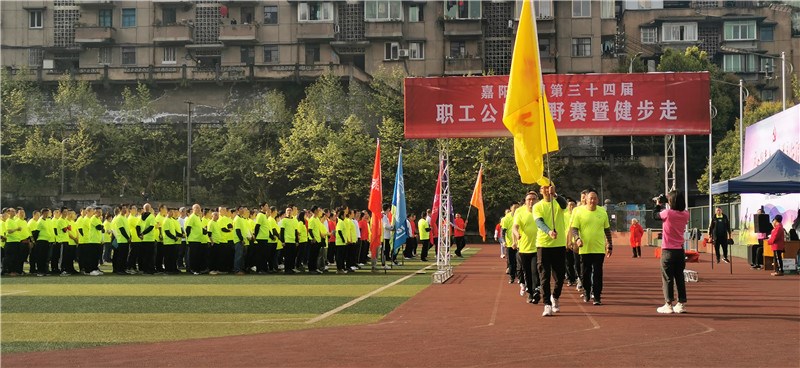 伴随着欢快的运动员进行曲,方阵健步走拉开序幕,公司机关、福溪粉煤灰公司、营销公司、综合服务公司、物资供销公司、机电制造维修分公司、嘉阳煤矿等7个方阵逐一步入运动场。各色鲜艳的队旗在晨曦中迎风飘扬,身穿统一运动装的方阵队伍迈着整齐的步伐走向主席台接受检阅,“奋力拼搏,再铸辉煌”、“嘉阳、嘉阳,绽放光芒”等口号声在矿区回响。在工会主席谢建国宣布活动开始后,方阵队伍向集福桥进发,浩荡荡的人群行进在绿水青山间,春风拂面,花香萦绕,向着快乐、健康奔跑!