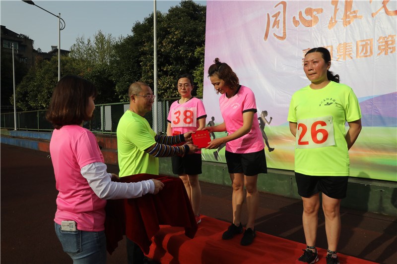 早上8点15分随着发令枪响起,越野赛竞技跑首先开赛,31名男、女选手快速冲出起跑线,奔向2公里外的集福桥中转站。奔跑在蜿蜒起伏的山间公路上,呼吸着户外清新的空气,欣赏着沿途秀丽的山水风光,选手们放松身心,挑战自我,畅享运动快乐。嘉阳煤矿职工曾前洁冲出起跑线后,快速甩开后面的队伍,一骑绝尘冲向中转站,返程后又继续保持领先,最终以18分39秒的成绩获男子组第一名,机关张梦宁、嘉阳煤矿肖红强分别获得二、三名。女子组冠军由嘉阳煤矿梁正惠继续保持,嘉阳煤矿徐英、综合服务公司胡星容分别获得亚军和季军。党委书记、董事长杜勤,总经理范勤英分别为男、女组前8名颁奖。