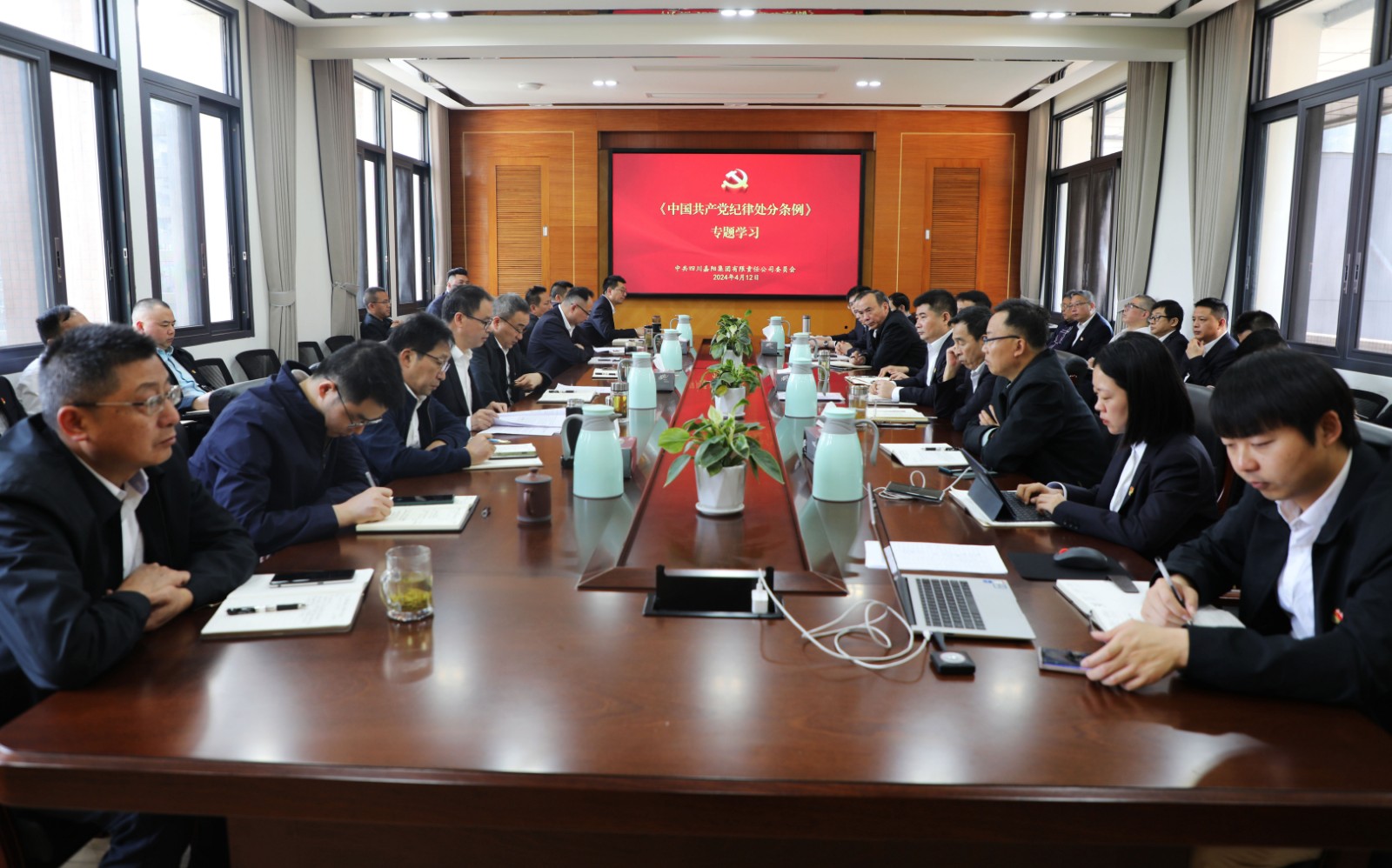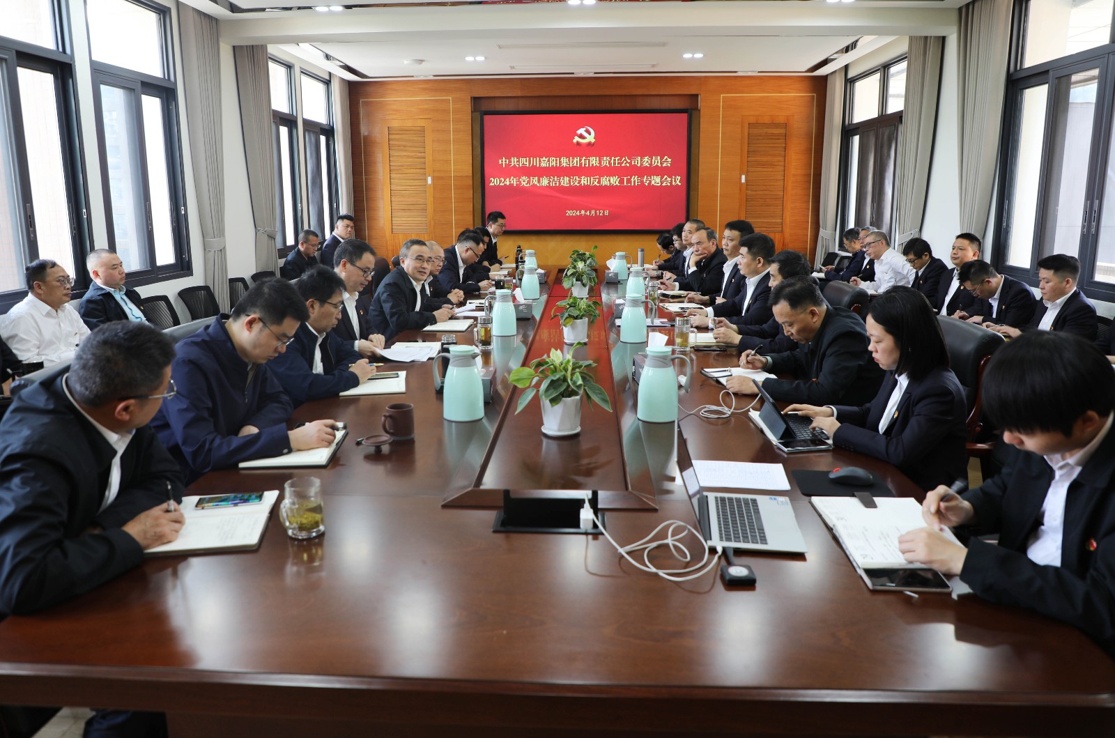 4月12日,集团公司召开2024年党风廉洁建设和反腐败工作专题会,党委书记、董事长杜勤主持会议,公司领导班子成员,纪委委员,各党总支、直属党支部书记和纪检委员,机关各部门负责人,专职纪检干部共37人参会。